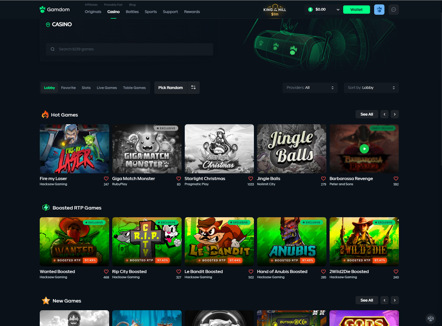 Gamdom's casino section boasts a wide variety of games, ranging from classic slots to immersive live dealer experiences.